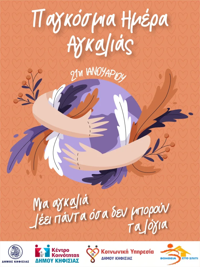 Σήμερα, 21 Ιανουαρίου, με αφορμή την Παγκόσμια Ημέρα της Αγκαλιάς, ο Δήμος Κηφισιάς επισημαίνει την αξία της ανθρώπινης επαφής και τη δύναμη της αγκαλιάς. Αυτή η κίνηση, πέρα από την φυσική επαφή, έχει τη μοναδική ικανότητα να εκφράζει συναισθήματα που ξεπερνούν τις λέξεις, προσφέροντας αίσθημα ασφάλειας, τρυφερότητας και υποστήριξης, ενώ ενισχύει τους δεσμούς μεταξύ των ανθρώπων.