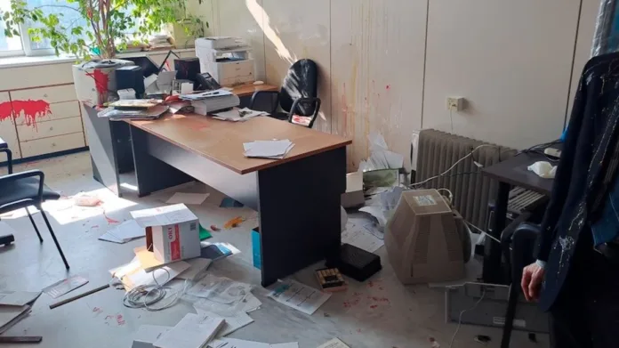 Ο κ. Νοτάρης, μιλώντας σε γνωστή εφημερίδα, περιέγραψε το σκηνικό, αναφέροντας ότι η πόρτα του γραφείου του άνοιξε βίαια και εμφανίστηκε μια ομάδα 10-15 κουκουλοφόρων. Εκείνος, προσπαθώντας να διαχειριστεί την κατάσταση, δέχθηκε τις πρώτες επιθέσεις, με έναν από τους επιτιθέμενους να του λέει «εάν ξανακάνεις οτιδήποτε θα σε σκοτώσουμε». Η ομάδα, σύμφωνα με τον πρόεδρο του τμήματος, είχε μαζί τους κόκκινη μπογιά και αυγά, τα οποία πέταξαν στο γραφείο και στα υλικά του. Μετά το πέρας της επίθεσης, προχώρησαν στη διάλυση του χώρου, καταστρέφοντας υπολογιστές, οθόνες και πετώντας τα χαρτιά στο πάτωμα.