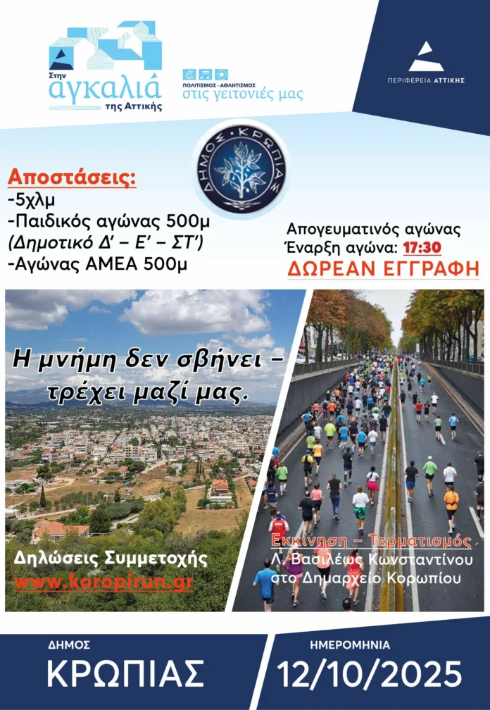 Koropi Mnimi Run 2025: Τιμητικός αγώνας μνήμης στο Κορωπί
