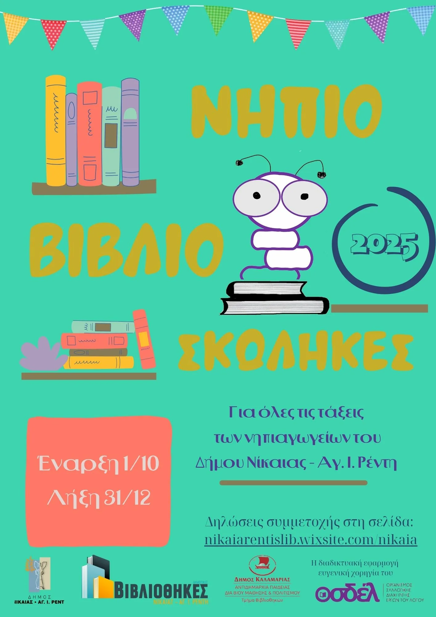 Οι Δημοτικές Βιβλιοθήκες Νίκαιας και Αγίου Ιωάννη Ρέντη εγκαινιάζουν το νέο πρόγραμμα φιλαναγνωσίας «Νηπιοβιβλιοσκώληκες», το οποίο θα διαρκέσει από 1 Οκτωβρίου έως 31 Δεκεμβρίου 2025, προσκαλώντας όλα τα Νηπιαγωγεία του Δήμου να συμμετάσχουν σε μια τρίμηνη δράση εντατικής ανάγνωσης.