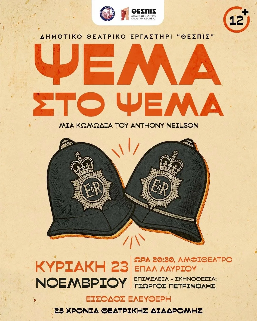 Το Δημοτικό Θεατρικό Εργαστήρι «Θέσπις» συμπληρώνει 25 χρόνια δημιουργικής πορείας και τιμά την επέτειο ανεβάζοντας την κωμωδία «Ψέμα στο Ψέμα» του Anthony Neilson. Η παράσταση παρουσιάζεται με σκηνοθεσία και επιμέλεια του Γιώργου Πετρινόλη, προσκαλώντας το κοινό σε μια βραδιά θεατρικής διασκέδασης.